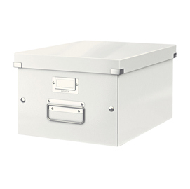 Scatole clickestore Leitz in cartone per archivio dal design moderno elegante e professionale. Assemblaggio veloce e semplicissimo. Doppia chiusura (interna ed esterna) e doppio strato di cartone sui bordi per una maggiore resistenza e stabilita'. Rivestimento in polipropilene lucido ed inserti in metallo nichelato. Formato LxHxP: 27x19x36cm.