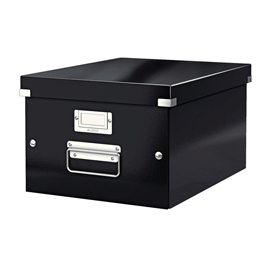 Scatole clickestore Leitz in cartone per archivio dal design moderno elegante e professionale. Assemblaggio veloce e semplicissimo. Doppia chiusura (interna ed esterna) e doppio strato d di cartone sui bordi per una maggiore resistenza e stabilita'. Rivestimento in polipropilene lucido ed inserti in metallo nichelato. Formato LxHxP 27x19x36cm.