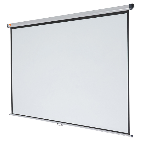La fantastica superficie opaca bianca dello schermo garantisce un'immagine nitida e precisa, facilmente visibile da tutti. Lo schermo puo' essere facilmente riposto nella sua custodia per proteggerlo o per depositarlo quando non lo si usa. Con i supporti estensibili opzionali lo schermo puo' essere montato sopra una lavagna bianca o orientato verso il pubblico. Dimensione schermo: 1750 x 1325 mm, dimensioni ingombro 1855 x 85 x 70mm, peso kg 5,4.