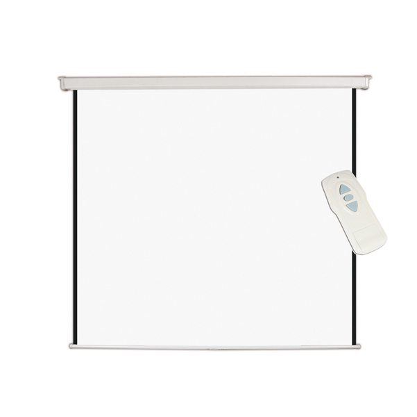 Schermo per proiezione a parete motorizzato con telecomando (senza fili). Formato quadrato. Motore silenzioso integrato nell'alloggiamento dello schermo. Interruttore Up/Down Off con telecomando incluso. Superficie di proiezione bianco opaco. Offre una riflettivita' superiore e una superficie piatta. Ideali per tutti i proiettori frontali. Dimensioni: 180x180cm.