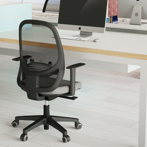 Seduta ergonomica adatta per uso intenso. Schienale in rete nera con supporto lombare regolabile. Meccanismo synchro con 4 blocchi antishock, traslatore e variatore di forza a contatto permanente. Braccioli regolabili. Elevazione a gas. Alt.tot.: 102-113; Prof.tot.: 68; Larg.seduta: 48cm (64cm c/bracc); Altezza seduta: 42-54cm.