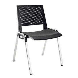 Poltroncina ad alta impilabilita' e alta resistenza 150kg. Struttura in tubolare a sezione rettangolare cromata con agganci unione a scomparsa . Seduta in robusto ppl.