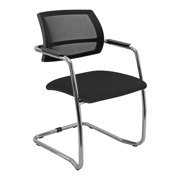 Seduta visitatore con slitta strutturale cromata - completa di braccioli. Rivestimento in tessuto PLUS - Ignifugo standard fibra modacrilica e reazione al fuoco classe 1. Alt.tot: 83cm; Prof. Tot: 59cm; Alt.schienale: 34cm; Largh.schienale: 50cm; Largh. Sedile: 50cm; Prof.sedile: 45cm; Alt.sedile: 45cm.