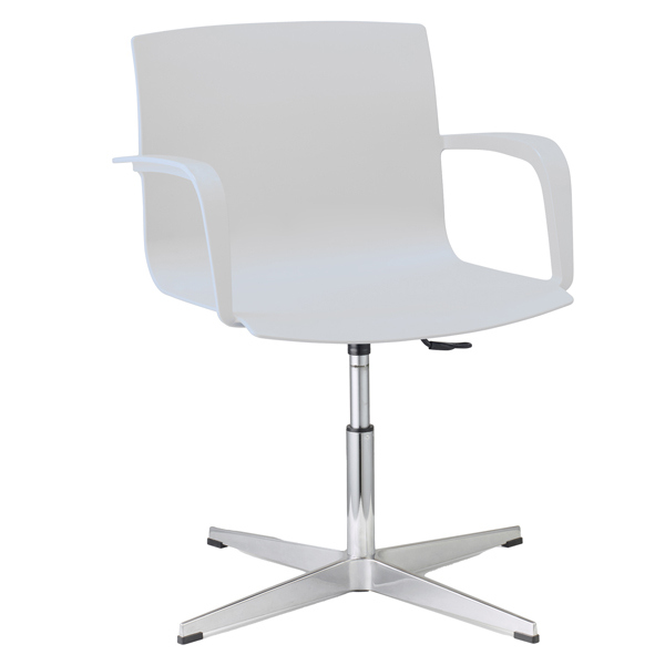 Sedia girevole 100% polipropilene con piedini. Elevazione a gas. Base alluminio pressofuso. Completa di braccioli. Alt. tot: 81-92cm. Profondita' totale: 63cm. Alt.schienale: 37cm. Largh.schienale: 48cm. Largh. Sedile: 48cm. Prof.sedile: 50cm. Alt.sedile: 45-56cm.