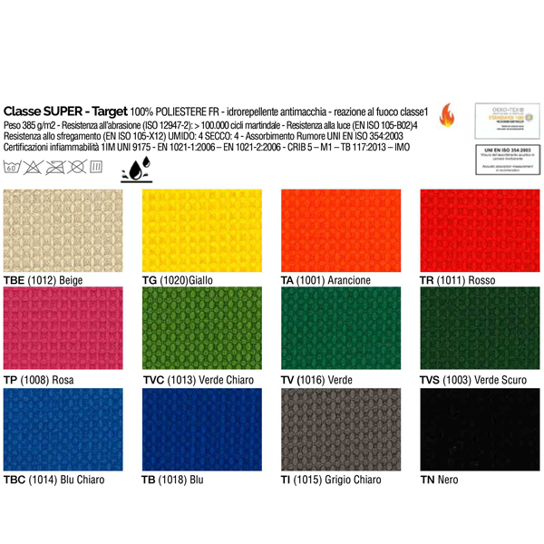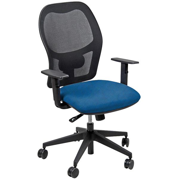 Seduta operativa girevole con elevazione a gas, meccanismo syncro, 4 blocchi anti shock e meccanismo a contatto permanente. Schienale con supporto lombare regolabile. Completa di braccioli regolabili. Rivestimento in tessuto SUPER - Target 100% poliestere idrorepellente antimacchia e reazione al fuoco classe 1. Alt.tot: 102-113cm; ProFormatot: 68cm; Alt.schienale: 60cm; Largh.schienale: 48cm; Largh.sedile: 48cm; Prof.sedile: 46cm; Alt.sedile: 42-54cm.