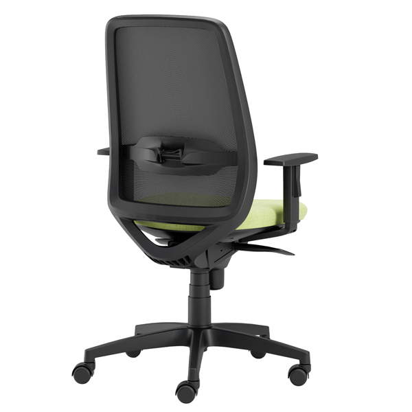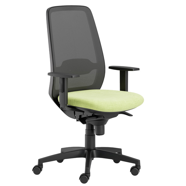 Sedia girevole operativa. Meccanismi: elevazione a gas - schienale regolabile up-down - meccanismo synchro con sedile traslabile - anti shock - meccanismo a contatto permanente. Rivestimento seduta in tessuto FASHION - Chili 75% poliestere ricilato e certificazione di infiammabilita' 1IM UNI 9175 EN 1021. Completa di braccioli regolabili. Alt.tot.: 100-112cm; Prof. Tot.: 70cm; Alt.schienale: 58cm; Larg.schienale: 47cm; Larg.seduta: 50cm; Prof.Sedile: 45cm; Alt. Sedile: 42-55cm.