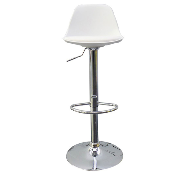 Sgabello con seduta regolabile in polipropilene e cuscino in similpelle imbottito facilmente lavabile. Base e struttura con poggiapiedi in acciaio cromato. Altezza della seduta regolabile da 59 a 71cm tramite leva con meccanismo di pompa a gas. Dimensioni: 39x42cm - H 83/104cm. Consegnato smontato (di facile assemblaggio).