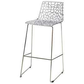 Base Sgabello da Bar. Sedile Solido e Lucido in Policarbonato e Base Cromata. 100% Senza Ipa. Prodotto in Italia. Dimensioni: 50x47x98cm.