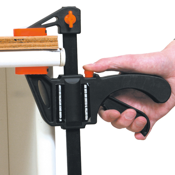 Serraggio a cricchetto - Pulsante per sgancio rapido - Struttura in acciaio emateriale plastico - Utilizzabile come allargatore. Apertura: 100mm. Profondita' 45mm.