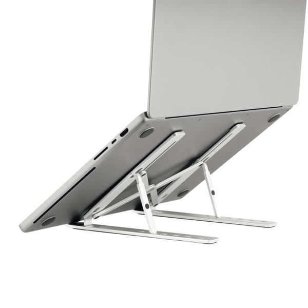 Supporto Universale Regolabile per Pc Portatili e Tablet Fino a 15''''. Altezza Regolabile in 6 Step per Un Posizionamento Ergonomico Del Dispositivo. Permette di Utilizzare Il Pc Portatile Come Schermo (in Abbinamento a Mouse e Tastiera Aggiuntivi). Elevata Stabilita' per Lavorare in Sicurezza. I Gommini Antiscivolo Proteggono Il Dispositivo Dai Graffi. Pieghevole, Salvaspazio e Comodo da Portare con Se'. La Confezione Include Anche Una Comoda Pochette da Viaggio per Riporre Il Supporto Quando Non in Uso.
