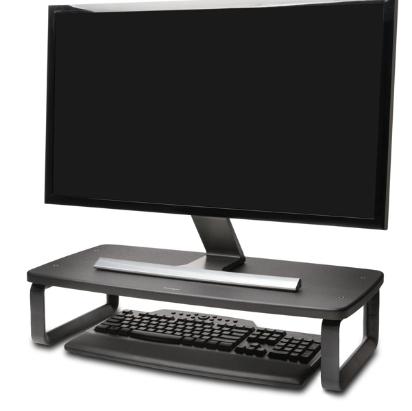 Il sistema SmartFit consente di regolare l'altezza del monitor (da minimo 65 a massimo 140mm) a seconda del comfort personale (3 impostazioni verticali senza l'ausilio di alcuno strumento). La base consente di posizionare il monitor per ridurre l'affaticamento di occhi e collo L'ampio design consente di tenere in basso tastiera o laptop e di sostenere monitor fino a 27" e 18kg. Dimensioni L610xP300mm. Distanza tra i piedini 523mm. Peso 1,78kg.