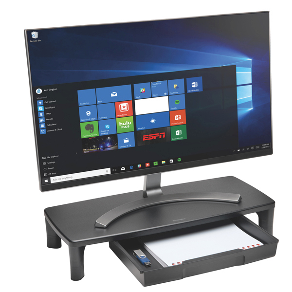 Il supporto per monitor SmartFit con cassetto di Kensington combina la perfetta ergonomia di un sollevatore per monitor regolabile con il vantaggio di disporre di maggiore spazio di archiviazione nella scrivania. Grazie alla tecnologia brevettata di SmartFit che garantisce una corretta posizione, il supporto solleva il monitor a un'altezza ottimale per la vista, favorendo cosi' una postura sana e un aumento della produttivita'. Il cassetto portaoggetti consente di organizzare gli accessori da scrivania, comprese penne, spillatrici e caricabatterie. Il supporto per monitor SmartFit con cassetto e' un sollevatore per monitor professionale 2 in 1 pensato per uffici moderni che hanno come priorita' il benessere dei dipendenti. Supporta iMac, PC all in one e monitor esterni fino a 30'' e 15 kg (33 lb).