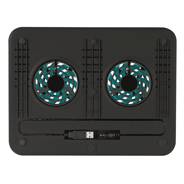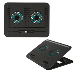 Supporto per notebook dotato di due silenziose ventole di raffreddamento incorporate, per una confortevole digitazione all'inclinazione desiderata e una protezione dal surriscaldamento. Posizionamento impostabile su 8 livelli per sollevare, abbassare o inclinare lo schermo e la tastiera del notebook per un migliore comfort operativo. Migliora l'efficienza di raffreddamento del notebook e protegge i mobili e le gambe dall'esposizione alle alte temperature dovute al suo utilizzo. Adatto a qualsiasi notebook, netbook o MacBook dotato di schermo fino a 16''. Ventole alimentate tramite USB: non e' necessario alcun collegamento alla presa a muro. Gommini protettivi per eliminare qualsiasi sdrucciolamento o pericolo di graffiature.Cavo e spinotto USB riponibili all'interno del supporto in caso di mancato utilizzo. Dimensioni: 23x30x1,5cm. Peso 531gr.