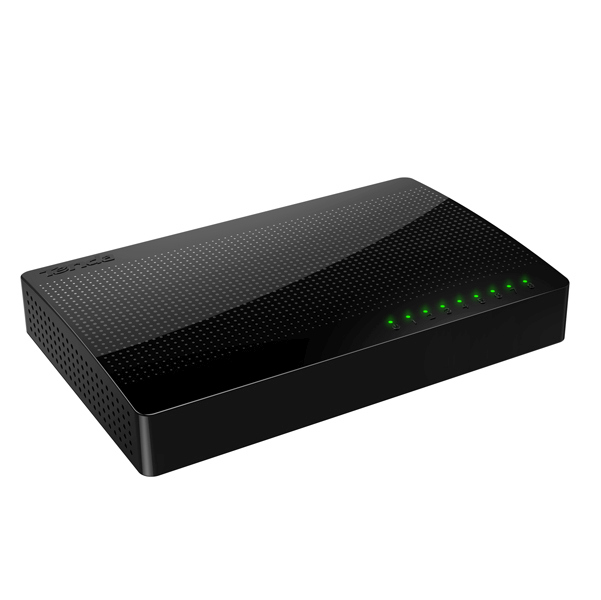 Interruttore da desktop SOHO a 8 porte Gigabit. E' dotato di 8 porte auto-regolanti da 10/100 / 1000Mbps, che e' possibile utilizzare per stabilire una rete LAN od estendere la rete di uplink. Rispetto ad un interruttore da 100M, la velocita' di trasmissione risulta essere fino a 10 volte superiore, grazie all'eliminazione del problema della riduzione di larghezza di banda in modalita' a ''grappolo''. Si puo' installare su parete o semplicemente su desktop. Senza necessita' di configurazione, puo' essere utilizzato immediatamente una volta collegato. caratteristiche: Standard e ProtocolloIEEE 802.3/u/x/ab Interfaccia8 porte auto-regolanti RJ45 da10/100/1000Mbps, auto MDI/MDIX Risorse sistema di trasmissione10BASE-T: Categoria 3 o superiore 100BASE-TX/1000BASE-T: Categoria 5, categoria 5e o superiore Efficienza nella modalita' di invio10Mbps: 14880pps 100Mbps: 148800pps 1000Mbps: 1488000pps LED8 LED da10/100/1000Mbps collegato/azione 1LED alimentazione CaratteristicheSistema di immagazzinamento ed invio dei dati rilevamento automatico, con aggiornamento automatico, degli indirizzi MAC capacita' di commutazione da16Gbps Potenza in entrata100-240V50/60Hz Potenza in uscita9V/0.6A ConsumiIn standby: massimo 2.3W:5.5W(220V/50Hz). Dimensioni 142 x 90 x 24mm.