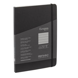 Elegante taccuino con rilegatura cucita a filorefe, apertura a 180. Dotato di chiusura con elastico e segnalibro abbinato alla copertina. Tasca interna a soffietto in carta. Copertina in cartoncino 290g/m2. 80 fogli interni. Formato A5. Pagine interne di carta bioprima 90g/m2 adatta a tutti gli strumenti di scrittura. Fluidita' perfetta su una superficie naturalmente liscia. La tonalita' avorio pallido combinata ad una stampa grigio scuro calda risulta rilassante per gli occhi. L'opacita' eccellente del foglio permette di riempiere completamente entrambi i lati del foglio.