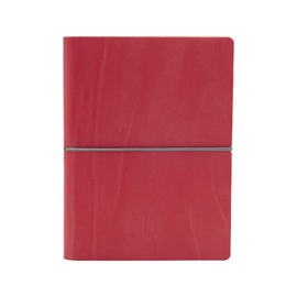 Taccuino con copertina in sintetico effetto liscio. Morbida, resistente e flessibile. Chiusura con elastico orizzontale. Carta riciclata colore avorio. Fatto a mano in Italia.