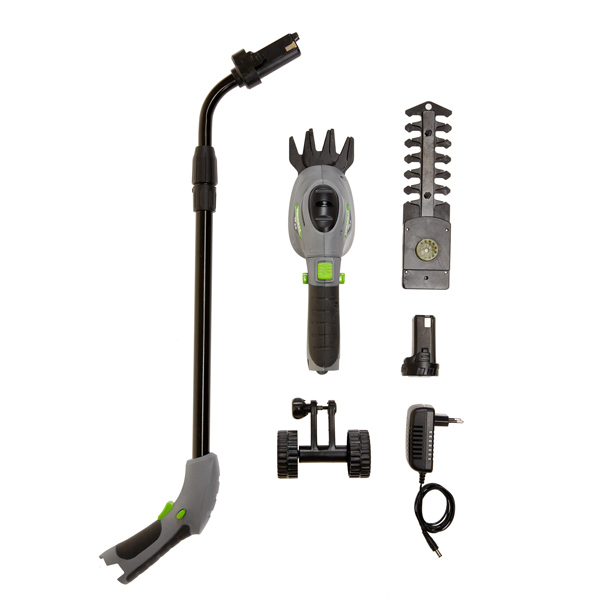 Il tagliabordi tagliasiepi a batteria li-ion con manico telescopico, adatto per le attivita' di manutenzione delle aree naturali. Grazie alle lame intercambiabili puo' essere utilizzato sia per la rifinitura delle siepi che per quella di bordi di prati e aiuole. Fornito di batteria 3,6v da 1,5ah e del relativo caricatore. Lunghezza massima di estensione 100cm. Dimensioni 35x11x70cm (HxPxL). Peso 1,5kg inclusa batteria. Testa ad inclinazione regolabile da 0 a 90 gradi. Impugnatura con grip e comodo tasto azionamento. Manico allungabile da 60 a 90cm. Tensione di funzionamento 3,6v dc. Velocita' rotazione 1000 giri/min. Lunghezza di taglio 110mm. Larghezza di taglio 80mm. Batteria e carica batteria. Caricabatteria 100-240v 50-60hz. Tempo di carica 4h circa.