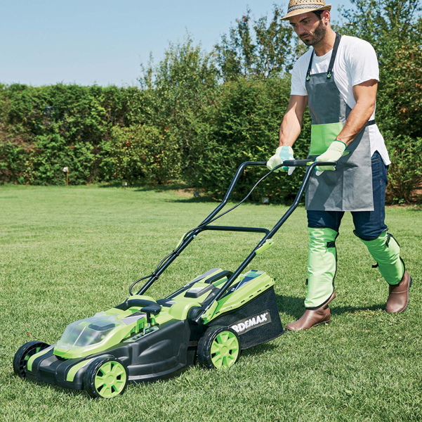Il rasaerba a batteria li-ion e' adatto per il taglio di prati di piccole o medie dimensioni. E' fornito con due batterie da 20v-2,5 Ah e relativo caricatore standard doppio. Diametro di taglio 380mm. Capacita' della sacca di raccolta 40 litri. Dimensioni 90x105x50cm (hxpxl). Peso 16kg con batteria inclusa. Batteria di ricambio art.4356. Attrezzo con tensione di funzionamento 40v dc (2x20v). Regime di minimo 3500 gir/min. Diametro di taglio 380mm. Capacita' della sacca di raccolta 40 lt. Tipo di protezione ipx1. Pressione sonora 80,8db. Potenza acustica 96db. Carica batteria con tensione di ingresso 220-240v. Tensione in uscita 21v. Frequenza 50-60 hz. Corrente di uscita 2 Ah. Potenza di ingresso 60w. Tempo di carica 1/1,5h circa utilizzando il caricatore rapido, 3h utilizzando il caricatore standard.