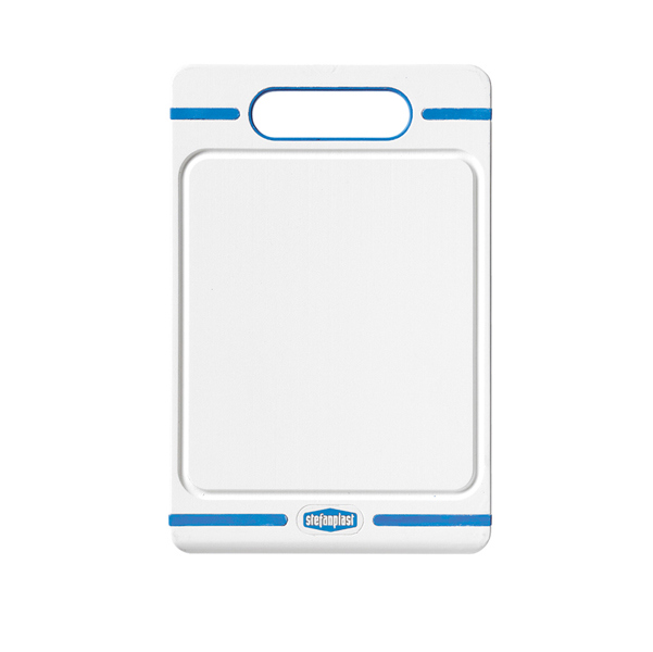 Tagliere italian chef in polipropilene bianco con rifiniture azzurre. Dimensioni: 24x16cm. Idoneo al contatto con gli alimenti. Lavabile in lavastoviglie.