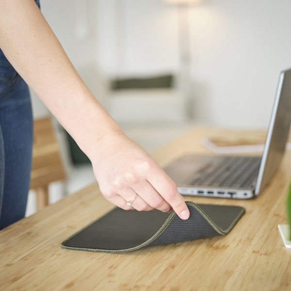 Tappetino per mouse liscio ed ecosostenibile, realizzato con materiali naturali e riciclati.