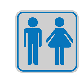 Etichette di indicazione per interni su pellicola autoadesiva colore argento opaco con pittogramma blu. Formato 82x82mm. Adatti per segnaletica in aree private. Confezione 10 pezzi.