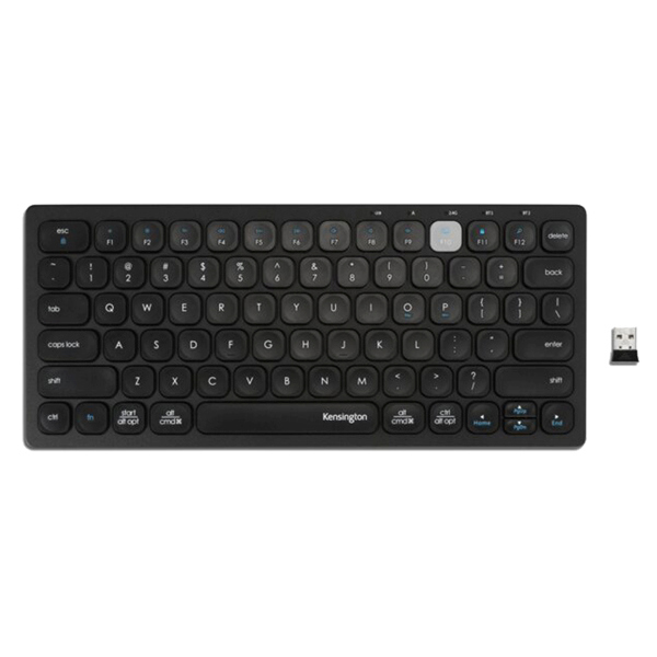 Elegante tastiera che premette collegamento e commutazione tra 3 dispositivi diversi; Doppio wireless - 2,4 GHz e Bluetooth 3.0/5.0, Tasti a forbice con hotkey multimediali, Crittografia AES a 128 bit, Protezione da pulizia di grado militare (MIL-STD-810H), Include 2 batterie AAA, Compatibile con Windows, macOS, iOS e Chrome OS.