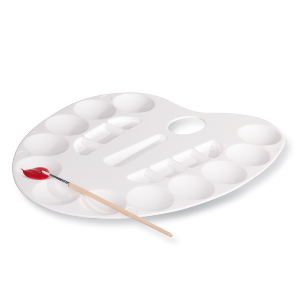 Tavolozza in materiale plastico permette di miscelare colori di ogni tipo, utilizzando sia le parti piatte che quelle preformate a vaschetta. Particolarmente utile per la diluizione delle tinte. Lavare dopo l'uso con acqua e sapone, evitando le spugne abrasive per conservare la superfice sempre lucida.