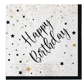 Tovaglioli in carta con scritta Happy Birthday. Dimensioni: 33x33cm.
