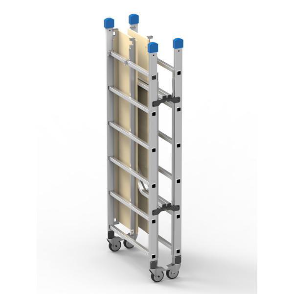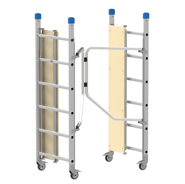 Trabattello in alluminio per lavori a bassa quota. Dinamico, si monta velocemente senza uso di viti o attrezzi. Si richiude senza doverlo smontare grazie al particolare snodo (occupa solo 25cm). Il piano di lavoro doppio montato sfalsato, facilita la salita. Montanti in tubolare d'alluminio 60x25mm e pioli antisdrucciolo 28x28mm. Dotato di 4 ruote con freno.Area max di lavoro a 2,90 metri. D.Lgs. 81 art. 140. D.Lgs 206/2005 art.2 consumatori. Portata massima 150 KG.