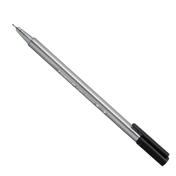 Fineliner con punta superfine tratto 0,3mm in metallo, fusto ergonomico triangolare in polipropilene, a garanzia di lunga durata. Inchiostro a base d'acqua e lavabile. Sistema Dry-safe: puo' rimanere per giorni senza cappuccio e non seccare. Colore: nero.