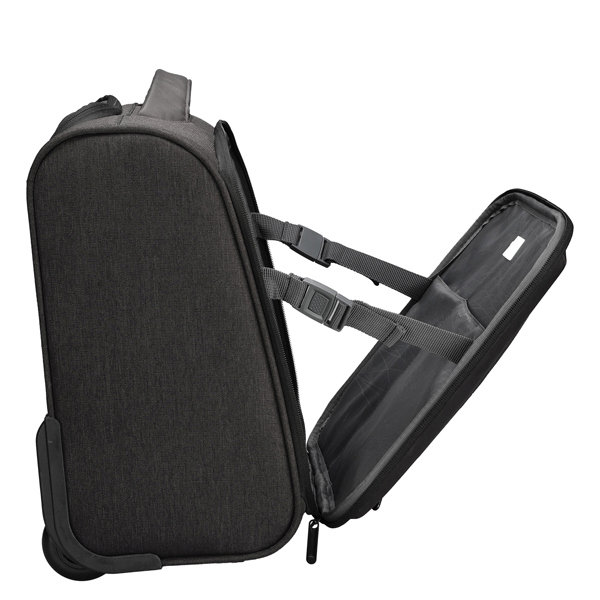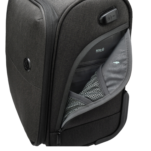 Trolley in poliestere prodotto con materiali robusti e durevoli. Ideale per viaggiare entra perfettamente nello spazio sotto il sedile degli aereo o treni. Tasca laterale portaoggetti e scomparto RFID interno per una maggiore protezione. Ampio scomparto interno per abiti e oggetti con cinture di fissaggio. Dimensioni, comprese le ruote e il manico telescopico: 101 x 33,5 x 20, senza ruote e manico: 36 x 33,5 x 20cm, volume 21L, peso 2,1kg.