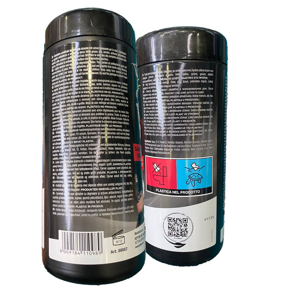 Salviette umidificate senza risciacquo, ideali da tenere a portata di mano nella cassetta degli attrezzi. Contiene solventi naturali e lanolina. Azione battericida. Particolarmente efficaci nell'eliminare vernici, smalto, sigillanti, catrame, ruggine, colle, resine, grasso, olio, lubrificanti, idrocarburi, bitume, nero di carbone, grafite, inchiostri, coloranti. Efficacia potenziata dall'aggiunta di solventi di origine naturale. Elimina i cattivi odori, lasciando le mani delicatamente profumate. Pratico: si puo' usare in qualunque situazione, non necessita risciacquo. Dimensione salviette: 17x20cm - Tessuto non tessuto - Molto resistente - Lato leggermente abrasivo - Piacevole profumo agrumato - Arricchito con emollienti - Contiene solventi naturali - Azione antibatterica - Contiene lanolina - pH epidermico - Dermatologicamente testato.