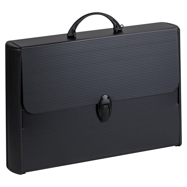 Valigetta in polipropilene alveolare nero con dorsi rigidi arrotondati in polipropilene nero.