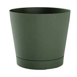 Il fondo del vaso scompare all'interno del sottovaso ma e' stato progettato per lasciare spazio all'acqua di defluire e depositarsi nella riserva. Realizzato solo con materie prime plastiche derivanti dal riciclo dei rifiuti domestici. Dimensioni: diametro 24cm.