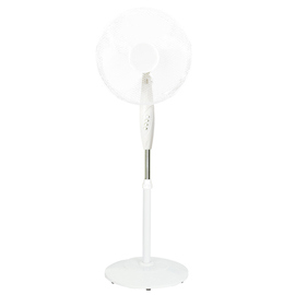 Ventilatore a piantana. con 3 velocita'. Diametro 40 cm. Altezza massima 130cm. Oscillazione orizzontale. Base rotonda con contrappeso. Materia: PP. Facile da montare. Dimensioni: 40 x 40 x130 cm.