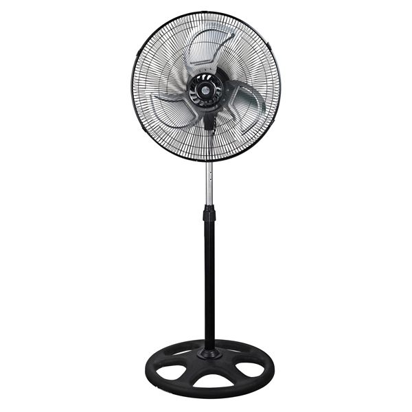 Ventilatore industriale robusto e potente, installabile a terra a parete o sul tavolo. a 3 velocita', con funzione oscillazione. 3 pale in metallo diametro 45cm. Griglia a nido d'ape; base circolare; Alimentazione: 220-240V - 50Hz. Potenza: 45W. Dimensioni: 52,3 x 127,8 x 49,8 cm. Peso: 4,7kg.