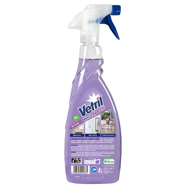 Vetril vetri e specchi anti aloni e con tecnologia asciuga rapido. Rimuove le impronte.