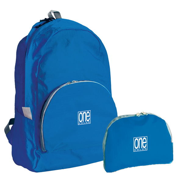 Zainetto in resistente nylon ripiegabile con tasca interna portaoggetti, tasca frontale. Cucitura rinforzate. Disponibile in 5 colori: grigio, verde, rosso, blu e lilla. Dimensioni aperto L30xH40xP10cm. Dimensioni chiuso: L24xH20xP4cm.